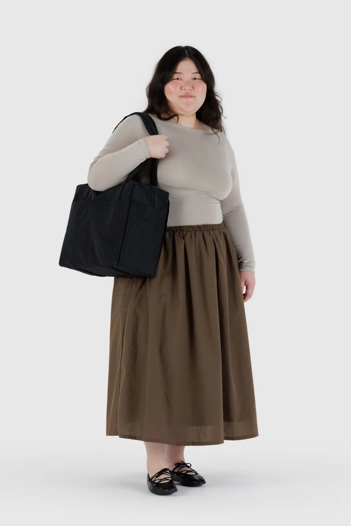 The Baggu Small Cloud Carry-On is a travel bag optimized for flying: it fits under an airplane seat, on top of your roller bag, and on your shoulder. Exterior pockets keep your travel essentials within reach, including a tech pocket that fits up to a 16” laptop, and side pockets for your water bottle and boarding pass. The bag packs down into its interior detachable pouch for easy storage.