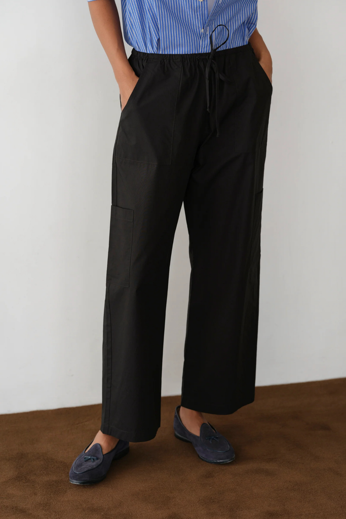 The Pop Drawstring Cargo Pant is crafted from crisp cotton poplin for a lightweight, airy feel. Featuring a drawstring waist and a slightly cropped fit, it's designed with cargo, side, and back pockets for effortless functionality. Versatile and easy to style, it's a go-to piece for any wardrobe.
