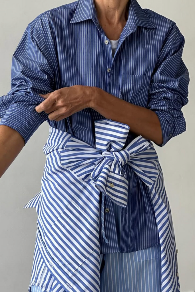A timeless wardrobe staple designed for effortless styling. Crafted from crisp cotton poplin, it features a back yoke with double pleats, a front square pocket, tortoise buttons, and pleated cuffs. Inspired by vintage men's shirting, its intentionally relaxed fit offers a perfect balance of structure and ease.