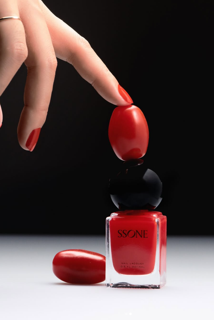 Ssone An Unexpected Red Nail Polish. Long-wearing nail lacquer for all seasons in a palette inspired by organic elements.
